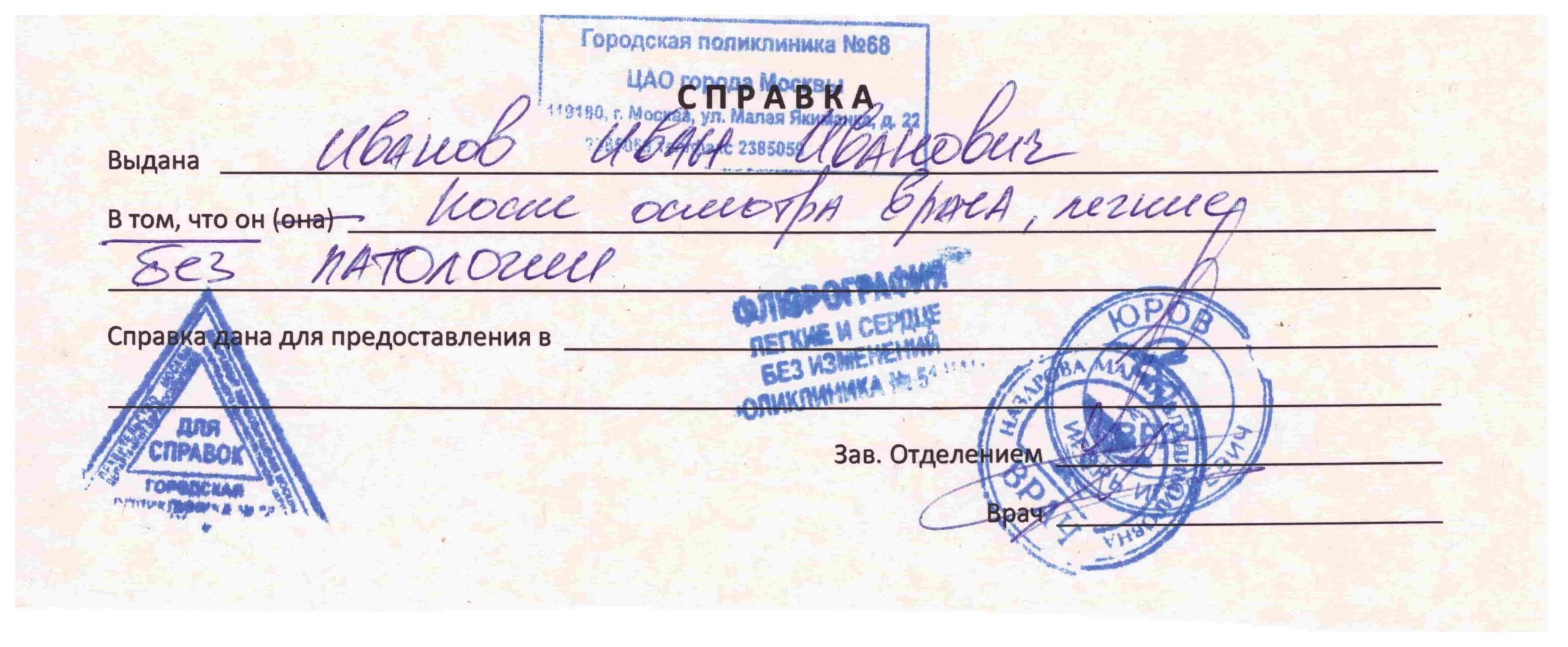 В нашем центре купить флюорографию без прохождения можно всего за 30 минут. Именно столько времени займет оформление справки, которая не будет ничем отличаться от подлинного документа. Оформляется она на оригинальном бланке и подписывается практикующим специалистом. Тесное сотрудничество с московскими лицензированными поликлиниками позволяет нам максимально быстро оформлять любые медицинские документы, способные пройти проверку на выявление подделки.